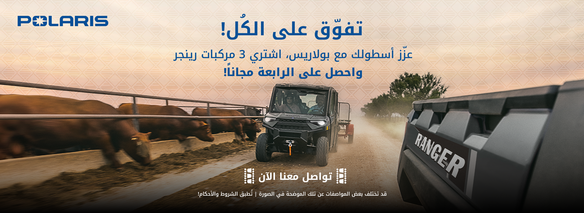 في توكيلات الجزيرة، الوكيل الحصري والرسمي لبولاريس في السعودية، نحن ملتزمون بتقديم أفضل العروض على مركبات بولاريس، بالإضافة إلى قيم استثنائية على خطط الصيانة وقطع الغيار الأصلية. قم بحفظ هذه الصفحة لتبقى على اطلاع بأحدث العروض الحصرية على المركبات والإكسسوارات المختارة. استمتع بجودة متميزة وخدمة موثوقة مدعومة من توكيلات الجزيرة.