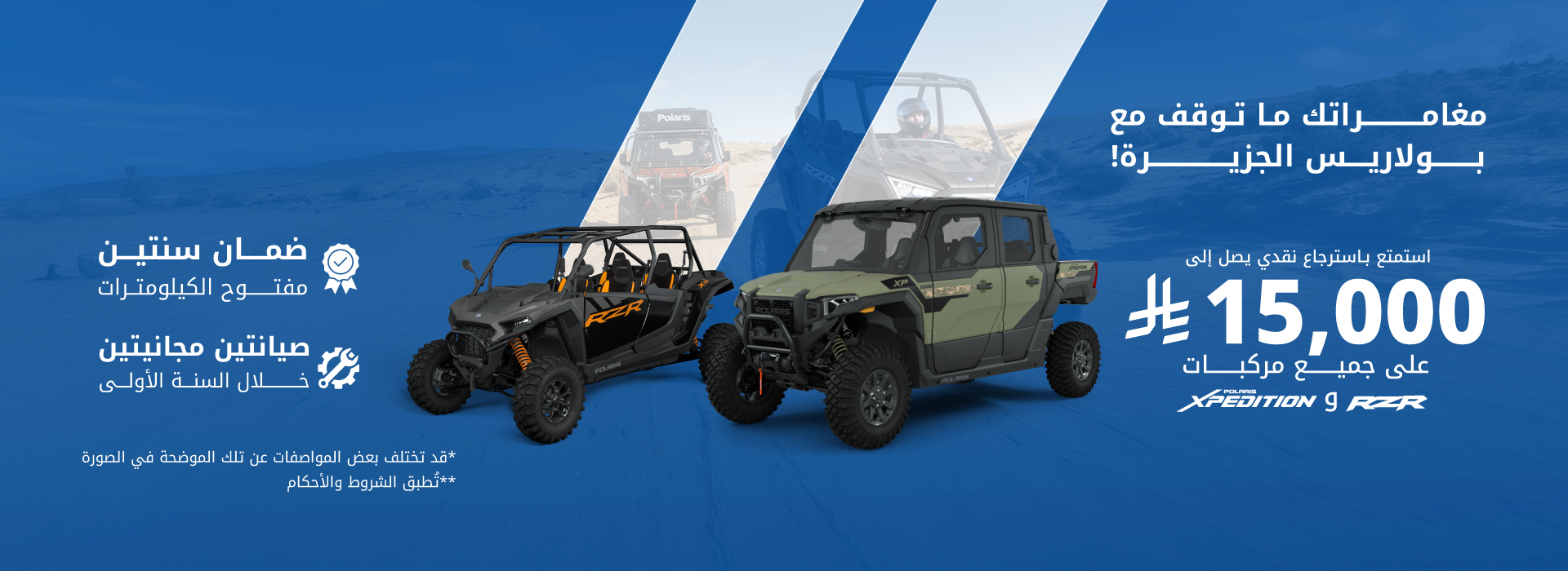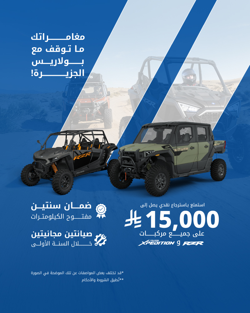 استمتع بـ استرجاع نقدي يصل إلى 15,000 على جميع مركبات RZR و XPEDITION
